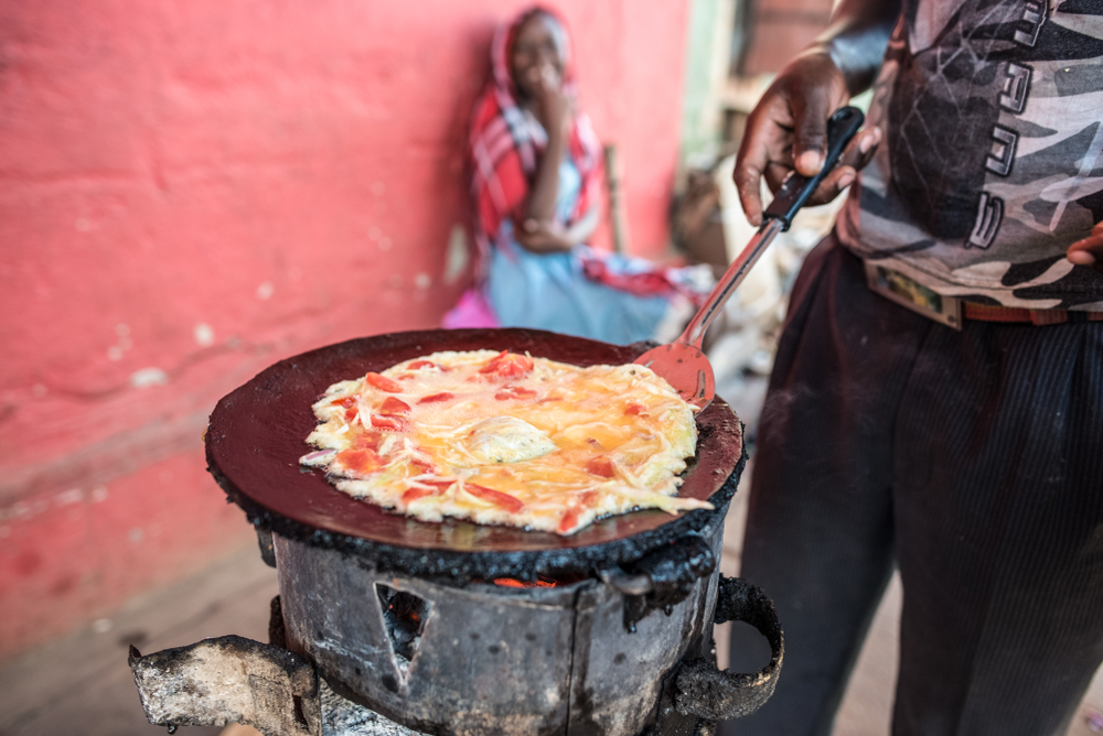 L’Omelette : Généralement cuite avec des oignons émincés, des tomates, du chou et parfois des poivrons.